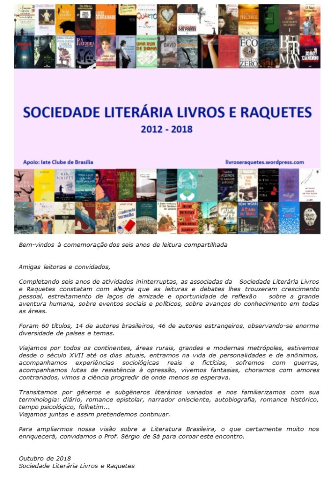 Para ver as fotos do encontro:https://livroseraquetes.wordpress.com/2018/11/10/seis-anos-da-sociedade-literaria-livros-e-raquetes-fotos-do-encontro/