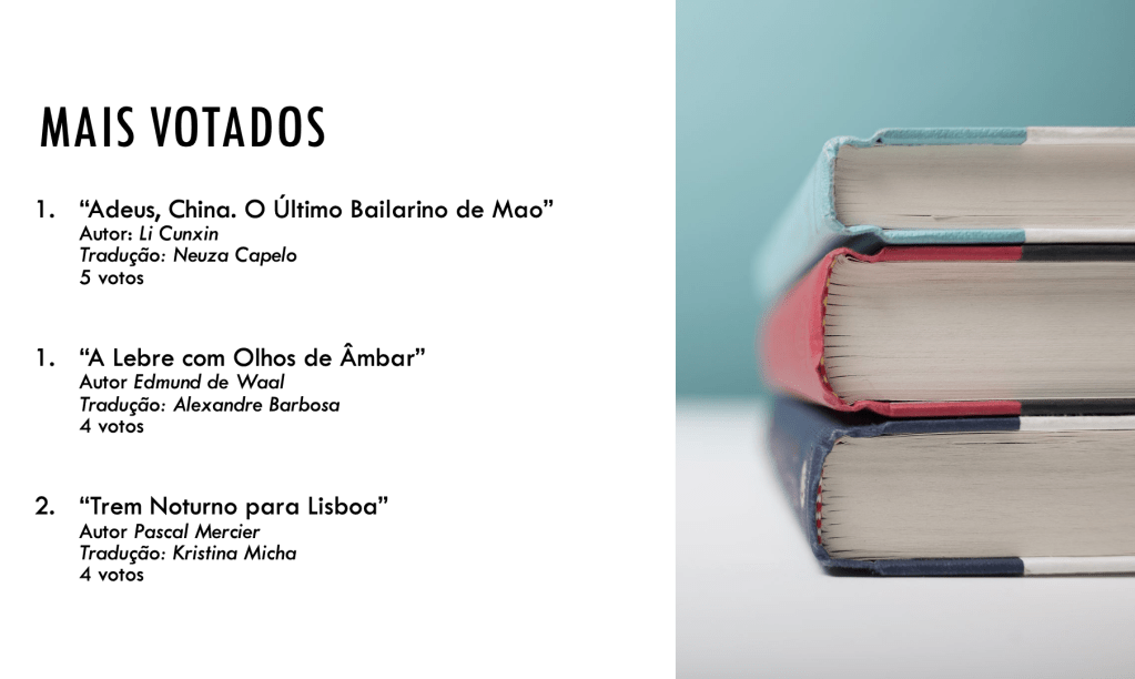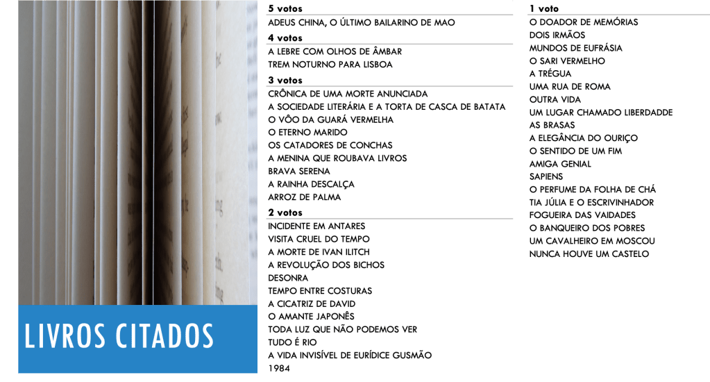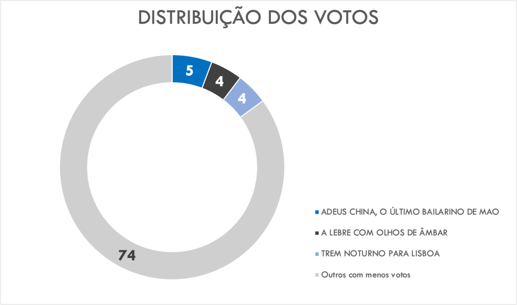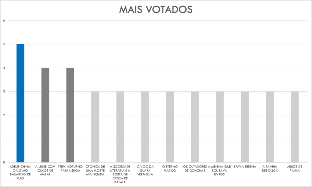 Pelos resultados, podemos afirmar que o grupo é marcado pela diversidade! Não temos as mesmas preferências! Não houve um “grande vencedor”. A diferença dos três primeiros colocados para os outros citados foi muito pequena. É isso que torna os debates animados e interessantes!